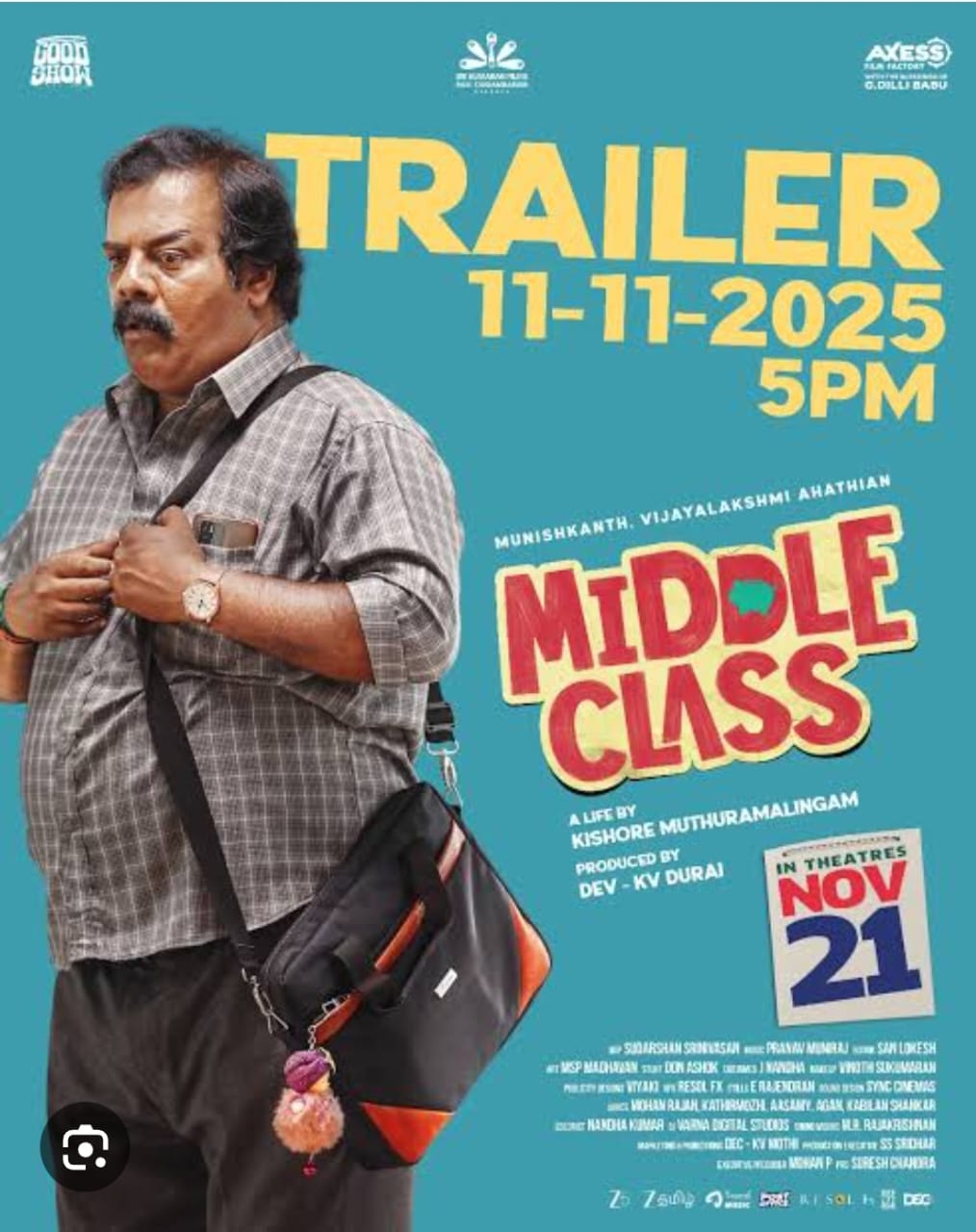 அக்ஸஸ் ஃபிலிம் பேக்டரி மற்றும் குட் ஷோ (Axess Film Factory & Good Show) பட நிறுவனங்கள் சார்பில் தேவ், கேவி துரை இணைந்து தயாரிக்கும் படம் ‘மிடில் கிளாஸ்’. கிஷோர் எம்.ராமலிங்கும் இயக்கும் இப்படத்தில் முனிஷ்காந்த் கதையின் நாயகனாக நடித்திருக்கிறார். அவருக்கு ஜோடியாக விஜயலட்சுமி நடித்திருக்கிறார்.