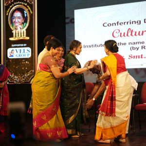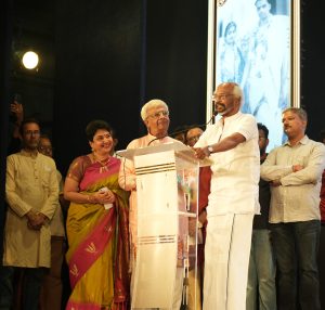 கலாச்சார மேன்மைக்கான டாக்டர் திருமதி ஒய் ஜி பி விருதை மூத்த நடிகை டாக்டர் வைஜயந்தி மாலா பாலிக்கு சூப்பர்ஸ்டார் ரஜினிகாந்த் வழங்கினார்