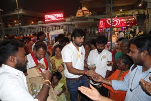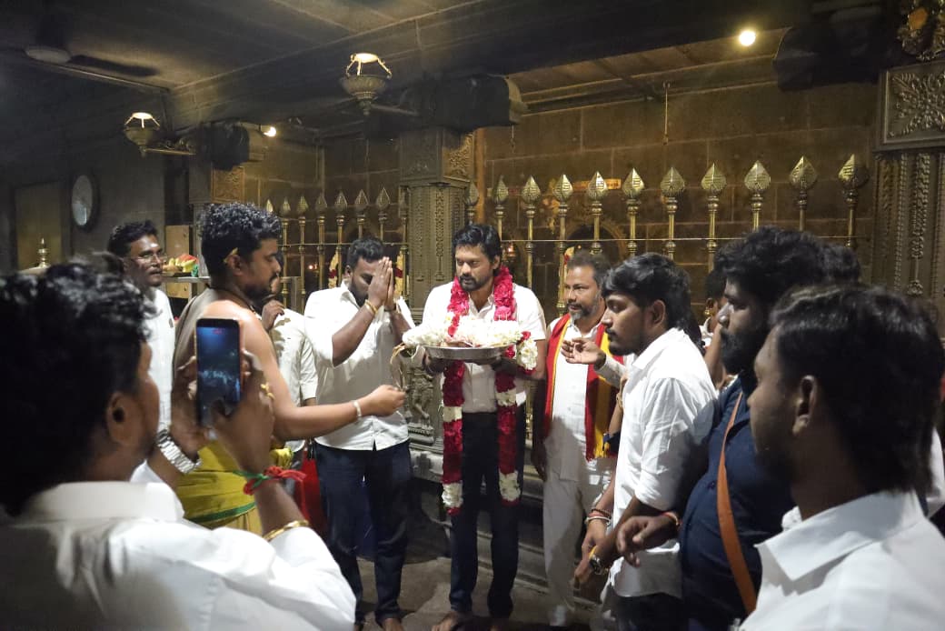 மண்ணுக்கும் மக்களுக்கும் அறக்கட்டளை மற்றும் த.வெ.க. கட்சியை சேர்ந்த பலர் நடிகர் சௌந்தரராஜாவுடன் வடபழனி கோவிலில் சாமி தரிசனம் செய்தனர். சிறப்பு வழிபாடு முடித்து வெளியே வந்த நடிகர் சௌந்தரராஜா கோவிலை சுற்றியுள்ள பிரதான சாலைகளில் சுமார் 500-க்கும் மேற்பட்டோருக்கு லட்டு மற்றும் விசில் வழங்கி தனது மகிழ்ச்சியை வெளிப்படுத்தினார்.