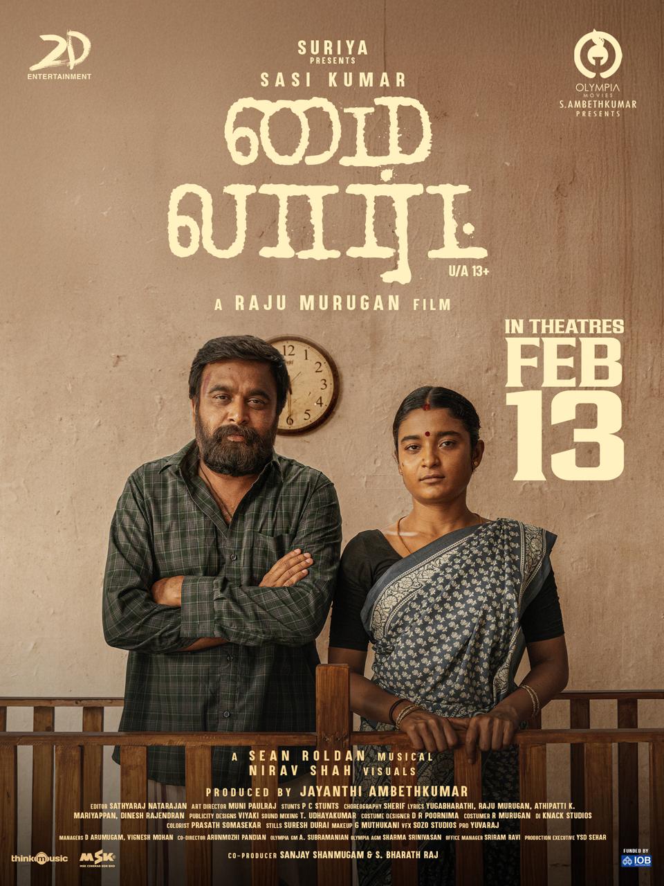 Starring Sasikumar and Chaithra in the lead roles, with music by Sean Roldan, the film has already garnered a warm response from audiences through its first look and trailer, building strong anticipation ahead of its release on Feb 13th.