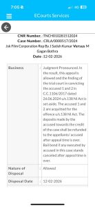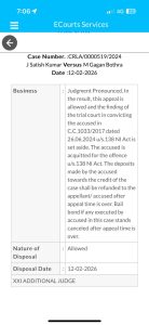 இதேவேளை, பெற்ற கடன் ரூ.15 லட்சம் கொடுத்தபின்பும் தவறான கோரிக்கை தொடர்பாக அவர்களுக்கு எதிராக குற்றவியல் வழக்கும் பதிவு செய்யப்பட்டிருந்தது. இருப்பினும், காசோலை வழக்கு மஜிஸ்திரேட் நீதிமன்றத்தில் விசாரணைக்கு ஏற்றுக்கொள்ளப்பட்டது.