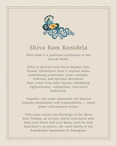 ✨Shiva Ram is a profound confluence of two eternal ideals. “Shiva” is inspired by Shiva Shankara Vara Prasad, reflecting inner strength, spiritual depth and stillness. “Ram” from Ram Charan embodies righteousness, compassion and moral courage.