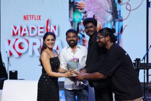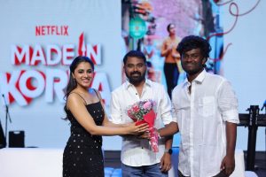இயக்குநர் ரா. கார்த்திக் இயக்கத்தில், ஸ்ரீநிதி சாகர் தயாரிப்பில் நெட்ஃபிலிக்ஸ் ஓடிடி தளத்தில் வெளியாகவுள்ள ‘மேட் இன் கொரியா’ படக்குழுவினர் இன்று சென்னையிலுள்ள மெட்ராஸ் கிறிஸ்டியன் கல்லூரி மாணவர்களை சந்தித்து படத்தின் டிரெய்லரை வெளியிட்டனர்.