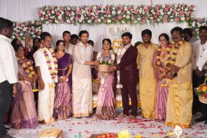 விழா நிகழ்வில் மூத்த திரைக்கலைஞர் சிவக்குமார், “கவிப்பேரரசு” வைரமுத்து, நீதியரசர் கலையரசன், பாராளுமன்ற உறுப்பினர்கள் ஜெகத்ரட்சகன், தமிழச்சி தங்கபாண்டியன், மேனாள் அமைச்சர் ஏகே, மூர்த்தி, தமிழ் தேசிய பேரியக்கத்தின் தலைவர் பெ.மணியரசன், தொழிலதிபர்கள் டெல்டா செல்வம், ராம்ஜி, ஜெயராமன் ஐ.ஏ.எஸ், சந்தானம் ஐஏஎஸ், சகாயம் ஐஏஎஸ், ஜெயகாந்தன் ஐஏஎஸ், தட்சிணாமூர்த்தி ஐஏஎஸ், நடிகர்கள் சந்தானம், இளவரசு, ரெடின் கிங்ஸ்லி, ஏகன், பிரிகடா, கராத்தே ராஜா, கிங்காங், இயக்குநர்கள் ஆர்வி.உதயகுமார், கதிர், பேரரசு, எழில், வசந்தபாலன், கரு.பழனியப்பன், செழியன், நம்பி, வீ.மா.செந்தில்குமார், அசோக் பாலாஜி, ஒளிப்பதிவாளர் கோபி ஜெகதீஸ்வரன், எடிட்டர் ராஜா முகமது தயாரிப்பாளர்கள் ஏ.எல்.அழகப்பன், சிவசக்தி பாண்டியன், மகிழ்ச்சி த.மணிவண்ணன், பம்மல் சரவணராஜா, நிர்மல் சரவணராஜா, குறள் அமுதன், சுந்தரவரதன், ஊடகவியலாளர்கள் ஏகலைவன், கார்ட்டூனிஸ்ட் பாலா, சமூக போராளி அற்புதம் அம்மாள், அவரது மகன் பேரறிவாளன், புலவர் இரத்தினவேலன், ஆவல் கணேசன் உள்ளிட்ட தமிழ் சான்றோர்களும் சமூக பேராளுமைகளும் கலந்துகொண்டு மணமக்களை மனம் நிறைந்து வாழ்த்தினர்.