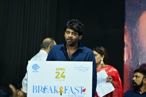 நடிகர் மைம் கோபி, “திரைப்படத்தின் கதாநாயகன் ராணவ் மிகவும் எளிமையான மனிதர். மேலும், அனைவரையும் எளிமையாகவும் நகைச்சுவையாகவும் அணுகக் கூடிய நபர். அவர் கடினமாக உழைத்துக் கொண்டிருக்கிறார். அவருக்கான இடம் நிச்சயமாக இந்த சினிமா துறையில் கிடைக்கும். ‘ப்ரேக்ஃபாஸ்ட்’ எப்பொழுதும் நமக்கு ஊட்டச்சத்தானது. எனவே தான் அவற்றை தவிர்க்கக்கூடாது என மருத்துவர்கள் சொல்வார்கள். அதே போன்று இந்தத் திரைப்படமும் தவிர்க்க முடியாத திரைப்படம், தவிர்க்க கூடாத திரைப்படம்” என தெரிவித்தார்.