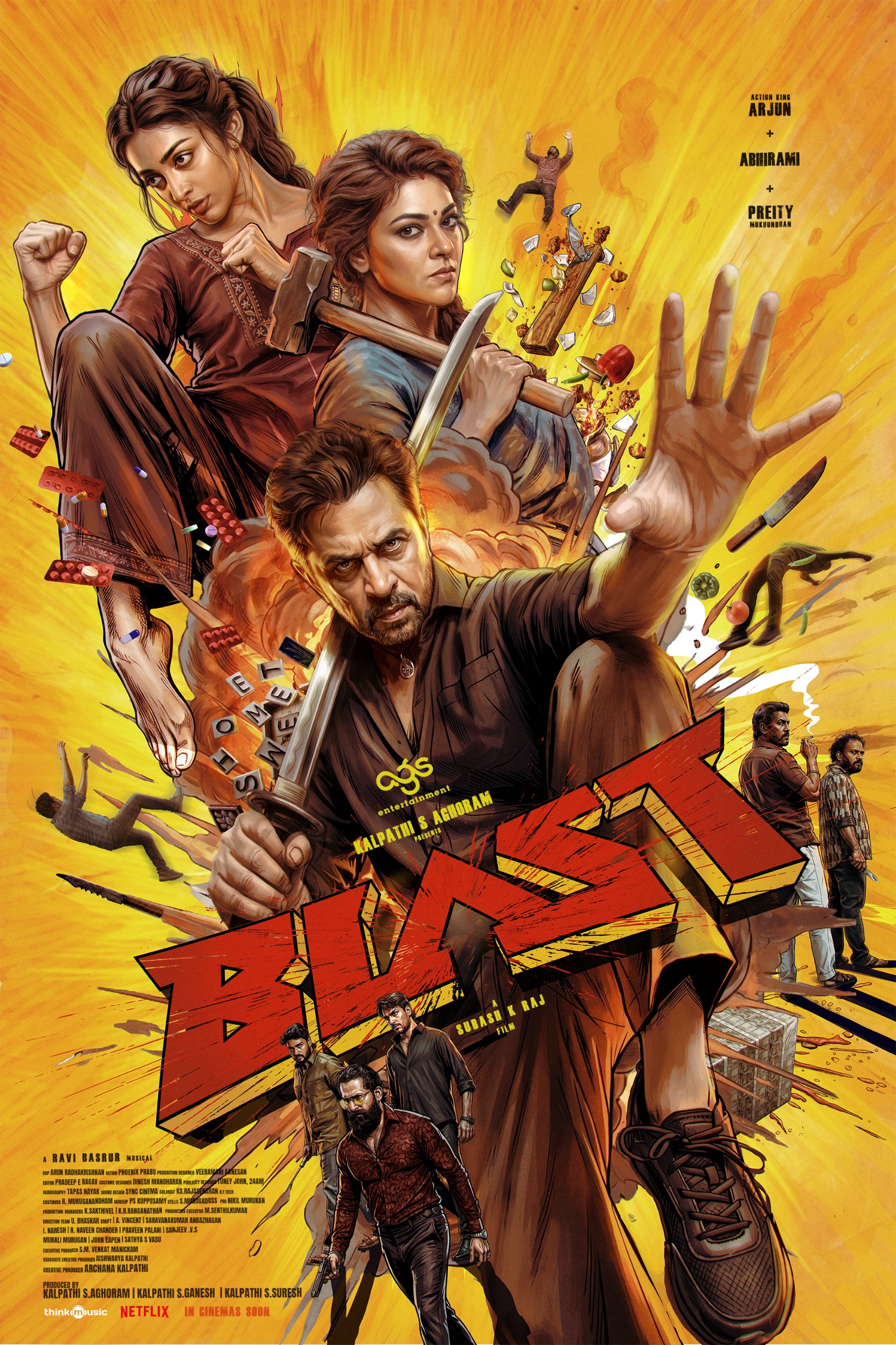 Produced by Kalpathi S. Aghoram, Kalpathi S. Ganesh, and Kalpathi S. Suresh for AGS Entertainment, directed by Subash K. Raj, and starring Arjun, Abhirami and Preithy Mukundhan in lead roles, ‘Blast’ is gearing up for worldwide theatrical release soon.